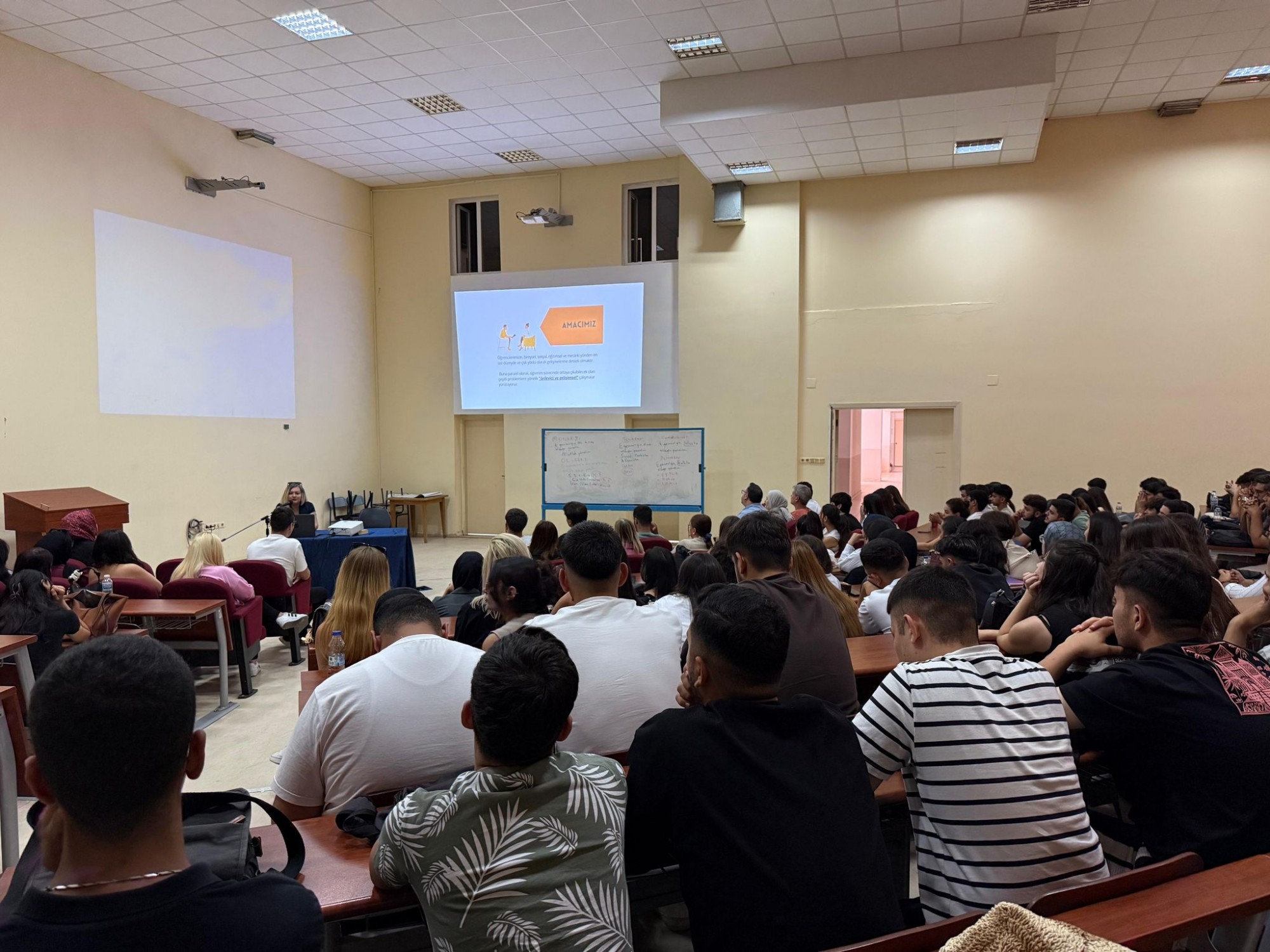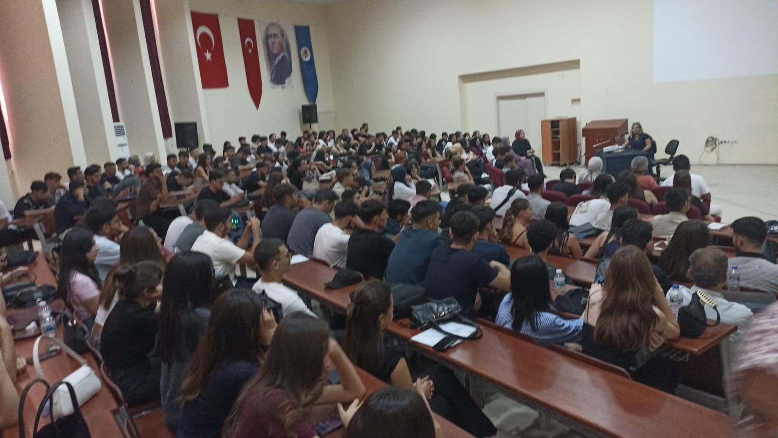 Mersin Üniversitesi Erdemli Meslek Yüksekokulu oryantasyon programı kapsamında Rehberlik ve Psikolojik Danışmanlık Uygulama ve Araştırma Merkezi’ni tanıtmak, öğrencilerimizin istek ve ihtiyaçlarını dinlemek için merkez uzmanlarımızdan Öğr. Gör. Dr. Sena Karakuş ve Öğr. Gör. Türkan Büşra Gür’ün katılımı ile 23 Eylül tarihinde Erdemli Meslek Yüksekokulu konferans salonunda seminer düzenlendi. Merkez Müdür Yardımcısı Öğr. Gör. Dr. Sena Karakuş’un merkezimizi tanıttığı seminerde merkezimiz hizmetleri, hangi durumlarda, nasıl başvurulacağı konusunda öğrenciler bilgilendirildi.