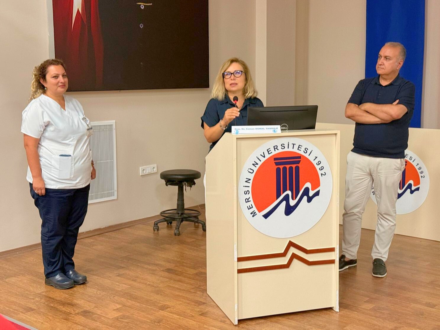 Eğitimi, Mersin Üniversitesi İletişim Fakültesi Dekanı Prof. Dr. Aslıhan Ardıç Çobaner ile Gazetecilik Bölümü Öğretim Üyesi Doç. Dr. Canan Tasouji verdi. Katılımcılara, sağlık hizmetlerinde iletişimin önemi, hasta haklarına yönelik doğru ve etkili iletişim biçimleri ile hasta memnuniyetini artırmaya yönelik yaklaşımlar aktarıldı.