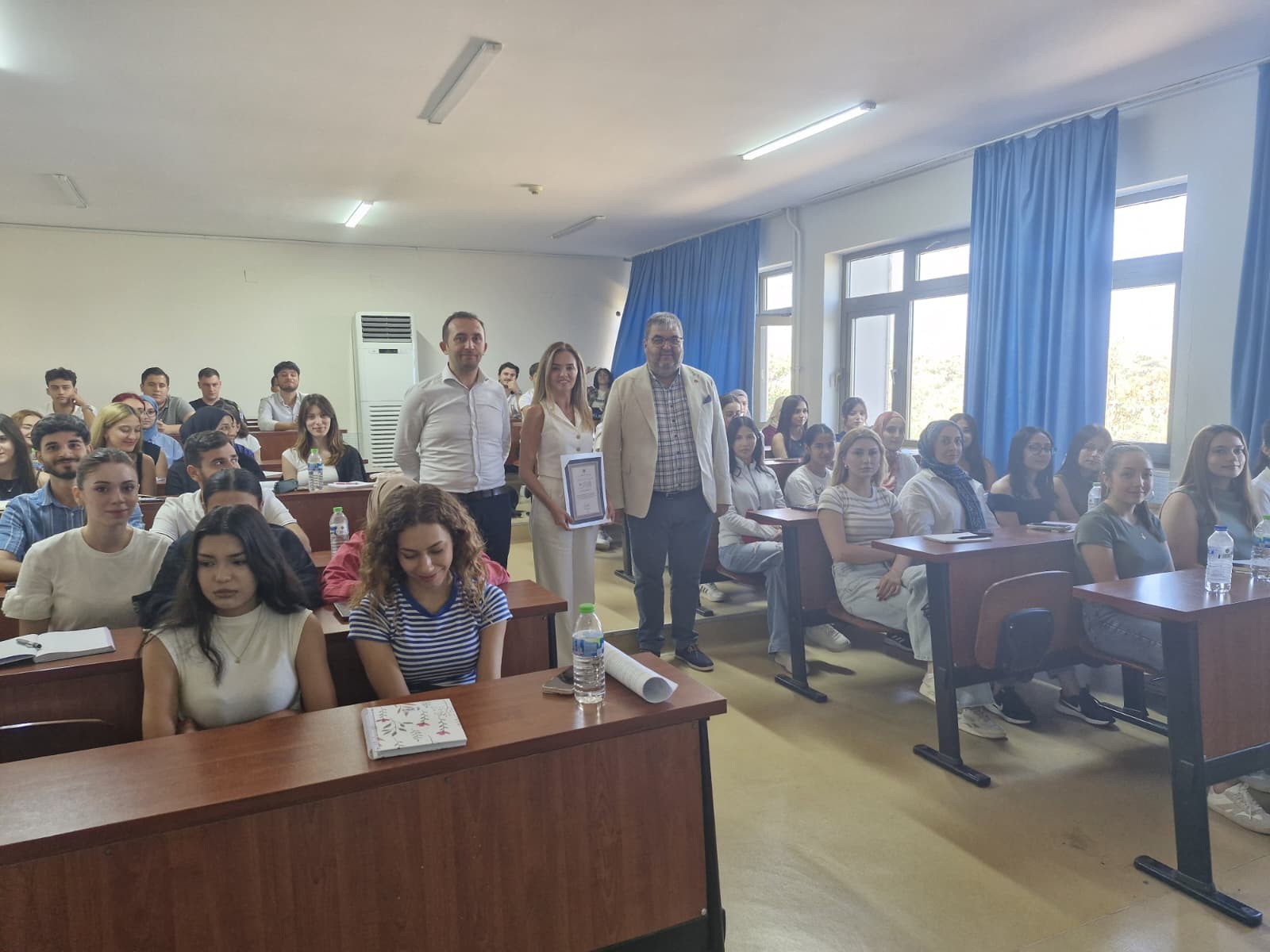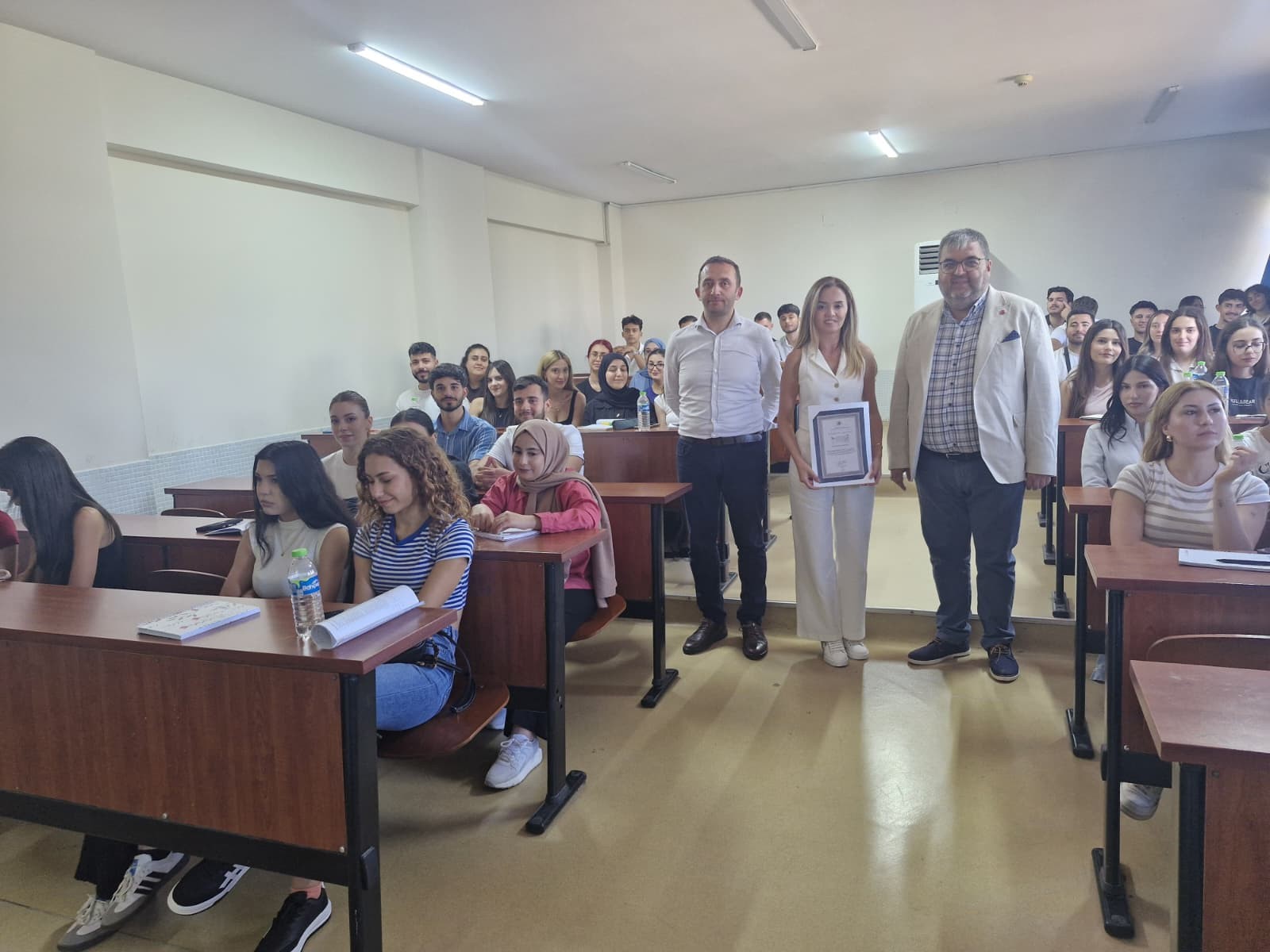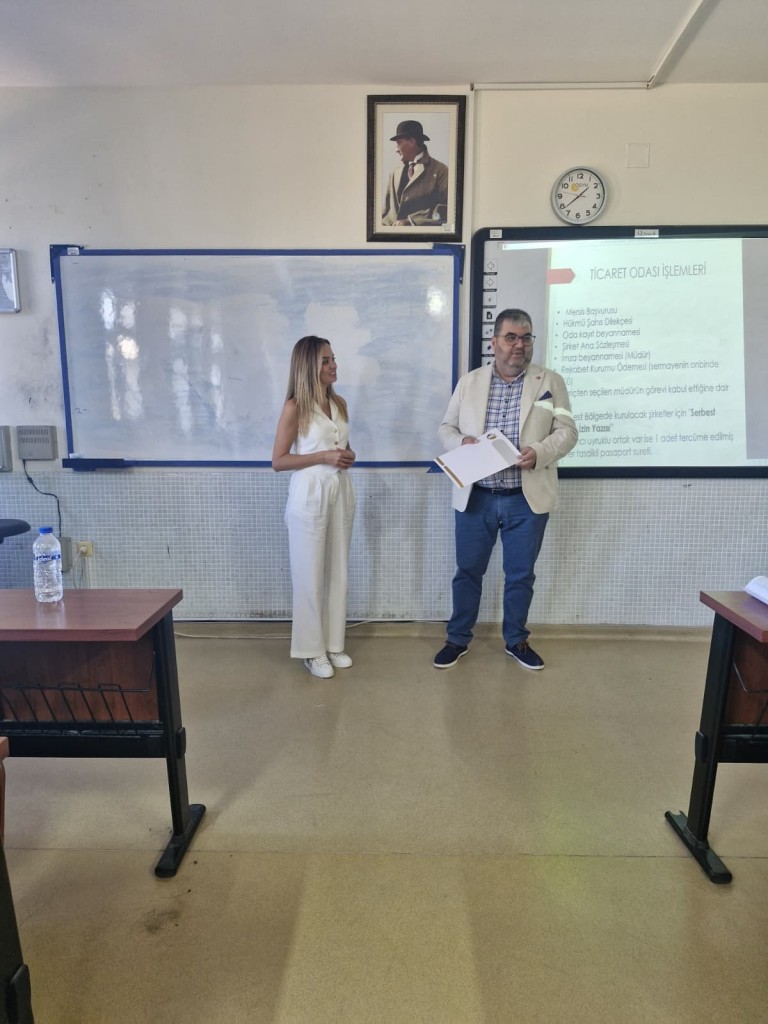 Sosyal Bilimler Meslek Yüksekokulu Muhasebe ve Vergi Uygulamaları Programı dönem faaliyetleri kapsamında gerçekleştirilen “Şirketlerin kuruluş işlemlerin mali müşavir çerçevesinde gerçekleştirilmesi” adlı etkinliğe SMMM ve Bağımsız Denetçi Asuman TÜRKOĞLU, bölüm başkanı Öğr. Gör. Dr. Emrah YILDIZ ve bölüm öğrencileri katılım sağladı. Asuman TÜRKOĞLU tarafından mali müşavirlik faaliyetleri arasında yer alan şirket kuruluş işlemleri sırasında neler yapılması gerektiği ve şirket kurulması için gerekli aşamalar aktarıldı. Ayrıca MERSİS sistemi üzerinden şirket kuruluşu uygulamalı olarak öğrencilerimize gösterildi.