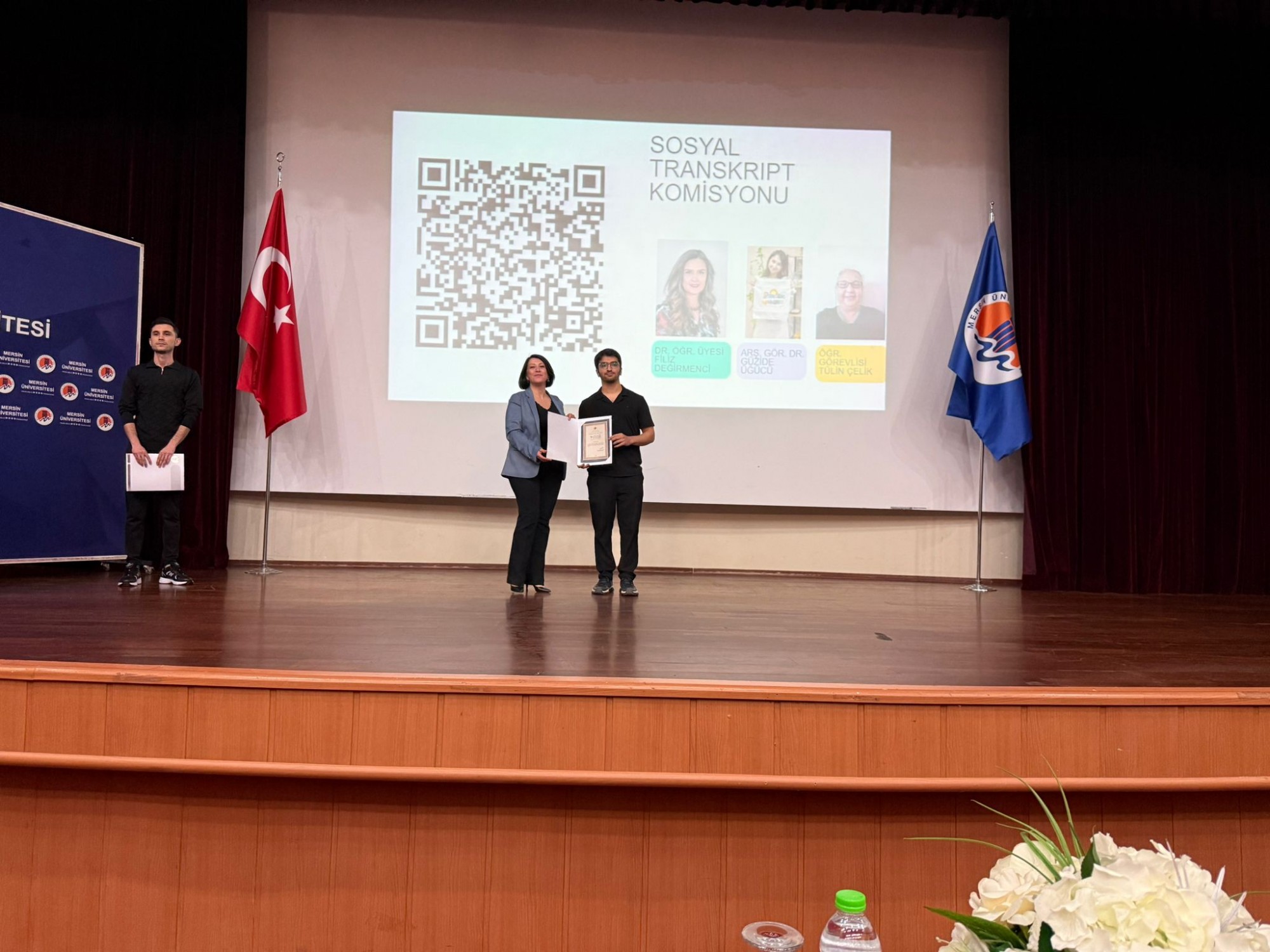 Programda, 2025 Gençler Arası Kültür ve Sanat Yarışmaları kapsamında “Gençler Arası Bilgi Yarışması'nda Üniversite Kategorisi Akdeniz Bölge Birinciliği kazanan takımda yer alan 2025 yılı mezunumuz Ümran AYAS ve Hemşirelik 2. sınıf öğrencimiz Bünyamin TAŞKAN’a teşekkür belgeleri takdim edildi. Fakültemize ilk üç sırada yerleşen öğrencilere hediyeler sunuldu.