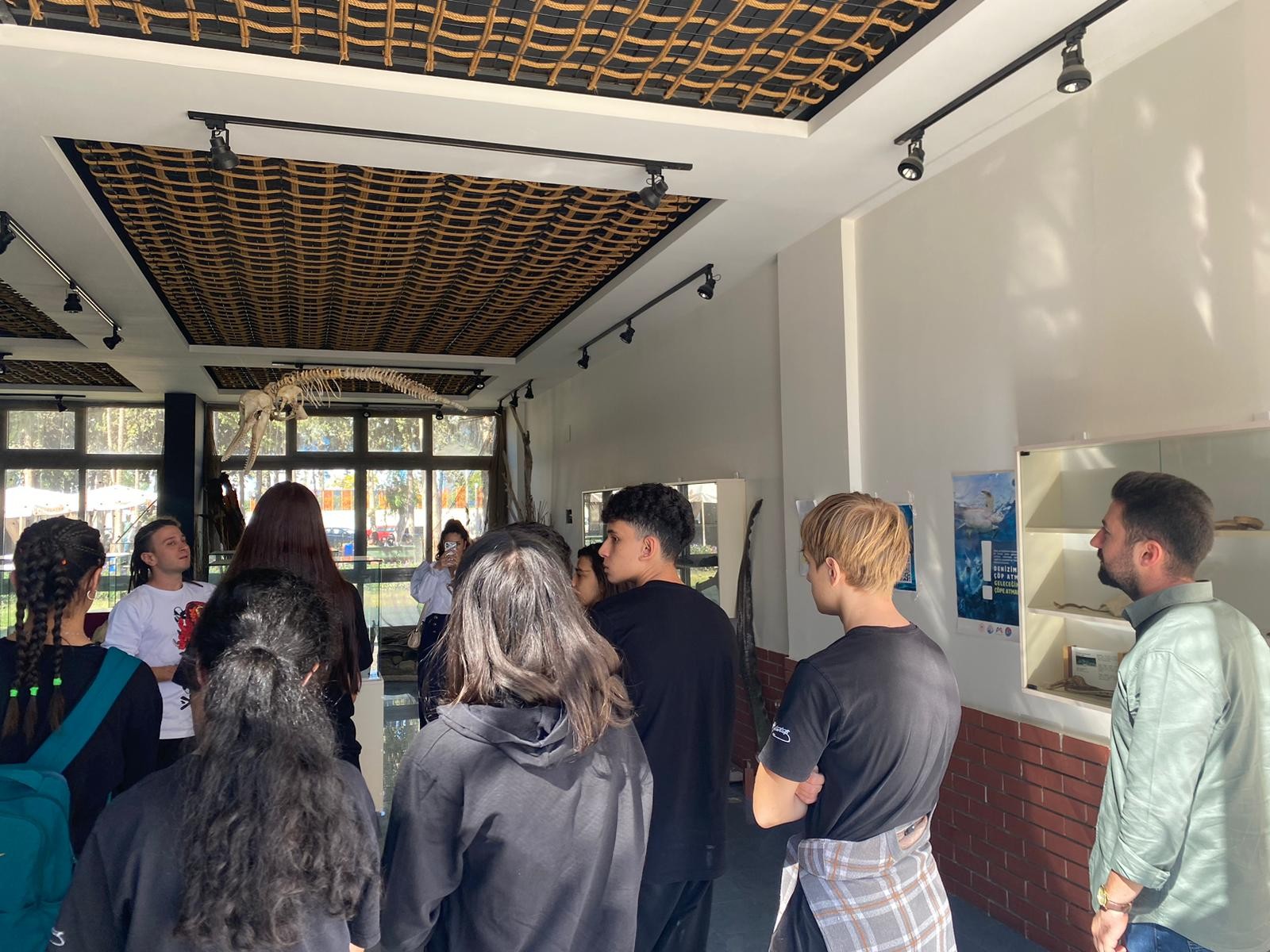 Ziyaretin en dikkat çekici noktalarından biri, 2021 yılında Mersin Körfezi’nde deniz aracı çarpması sonucu yaşamını yitiren 17 metrelik fin balinasının iskelet çalışması oldu. Öğrenciler, dev deniz canlısının iskeletinin çıkarılması sürecine tanıklık ederek, deniz biyolojisi ve koruma çalışmaları hakkında farkındalık kazandı.