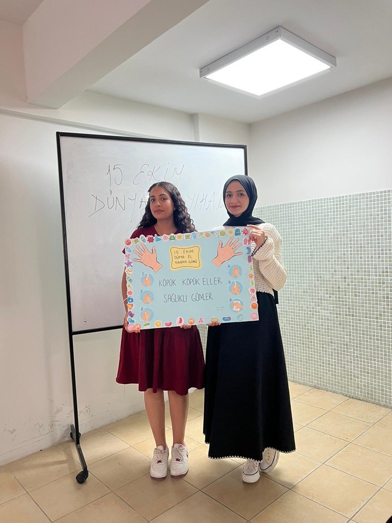 Etkinlik süresince öğrenciler, “Temiz Eller, Sağlıklı Yaşam” temasıyla hazırladıkları afiş ve pankartlarla okul koridorlarında bilgilendirme yaptı. Doğru el yıkama tekniklerinin anlatıldığı kısa sunumlar ve görseller aracılığıyla özellikle yaşlı bireylerin enfeksiyonlardan korunmasında el hijyeninin hayati rolü vurgulandı.