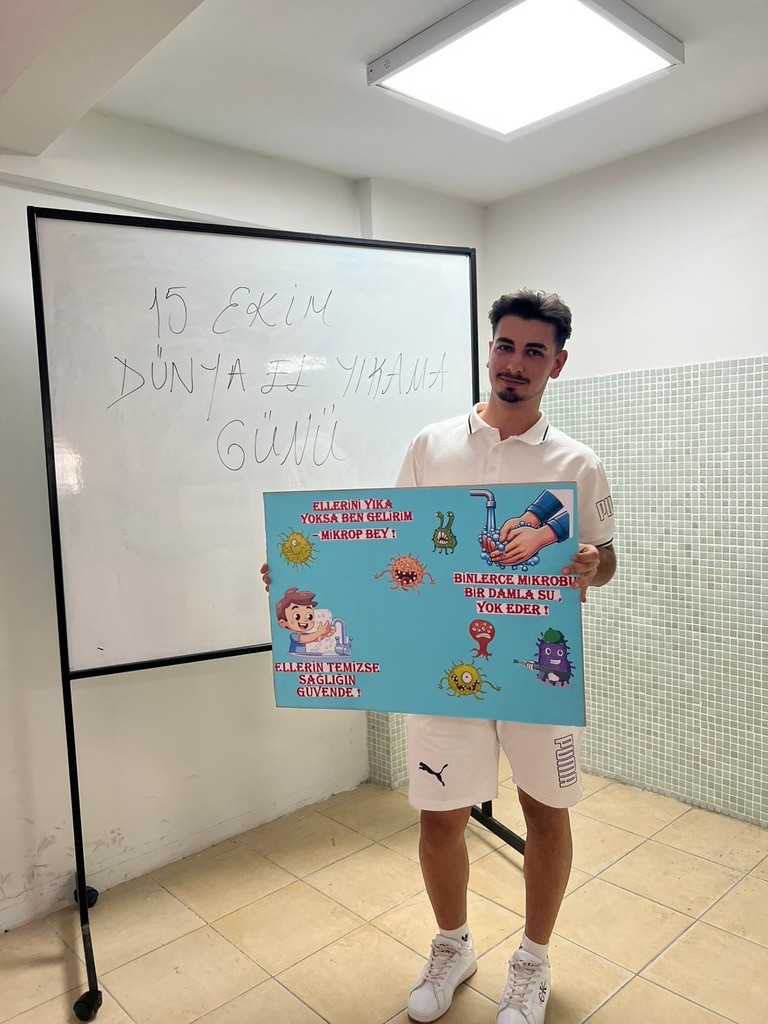 Mersin Üniversitesi Sağlık Hizmetleri Meslek Yüksekokulu Yaşlı Bakımı Programı 15 Ekim Dünya El Yıkama Günü kapsamında farkındalık oluşturmak amacıyla anlamlı bir etkinlik düzenledi. Öğr. Gör. Dr. Melek Yeşil Bayülgen rehberliğinde gerçekleştirilen etkinlikte, öğrenciler el hijyeninin yaşam boyu önemine dikkat çekmek için renkli, yaratıcı ve bilgilendirici pankartlar hazırladı.