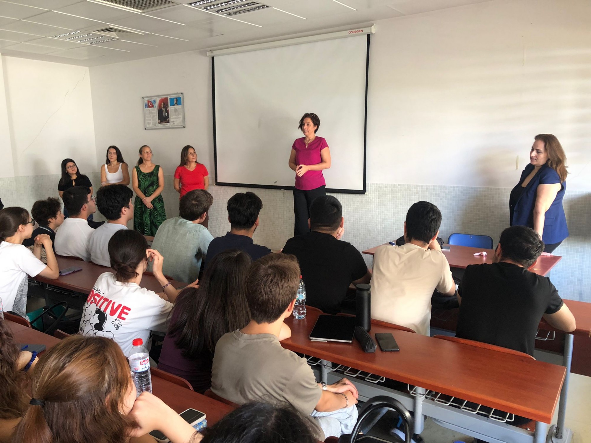 2025-2026 Eğitim Öğretim Yılında bölümümüze yeni kayıt yaptıran ve Hazırlık sınıfından 1. sınıfa geçmiş olan öğrencilerimize yönelik olarak 26 Eylül 2025 tarihinde saat 13.00’da Üniversitemiz Merkezi Derslikler Binası MZ02 numaralı derslikte bir oryantasyon toplantısı düzenlenmiştir. Toplantıda Bölümümüz öğretim üyeleri ve öğrencilerimiz bir araya gelerek tanışma fırsatı bulmuşlardır. Öğrencilerimize akademik danışman hocaları Prof. Dr. Pınar İBE AKCAN tarafından üniversitemiz ve bölüm işleyişinin yanı sıra öğrencilerin görevleri, akademik danışmanların görevleri ve üniversite yaşamına ilişkin genel bilgilendirmelerin yapılmasının ardından sınıf temsilcisi seçimi gerçekleştirilmiştir. Ardından bölüm başkanı Prof. Dr. Aygül UÇAR ve bölümümüz öğretim elemanları kendilerini ve derslerini öğrencilerimize tanıtarak karşılıklı beklentiler hakkında bilgilendirmeler yapmışlardır. Bölümümüz Öğrenci Topluluğu ile ilgili bilgilendirmelerin ardından ise Erasmus sürecine ilişkin soru ve yanıtlara yer verilmiştir.