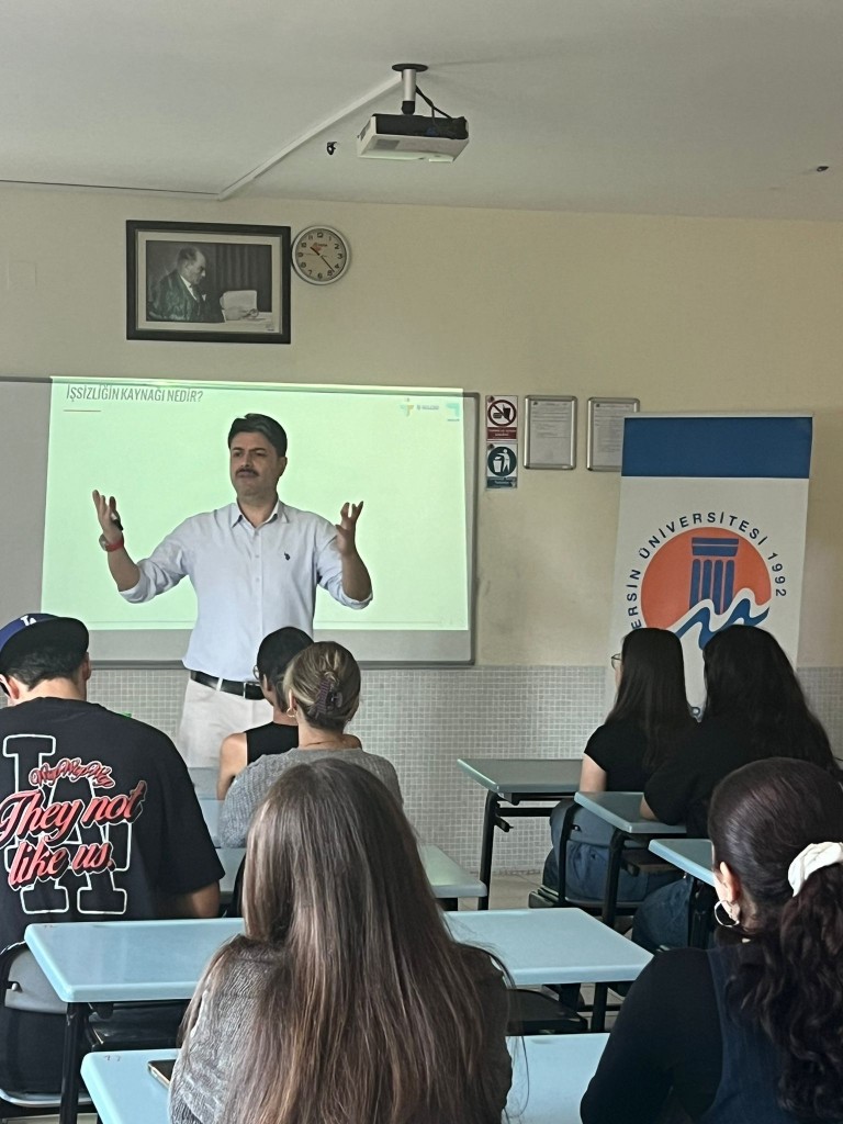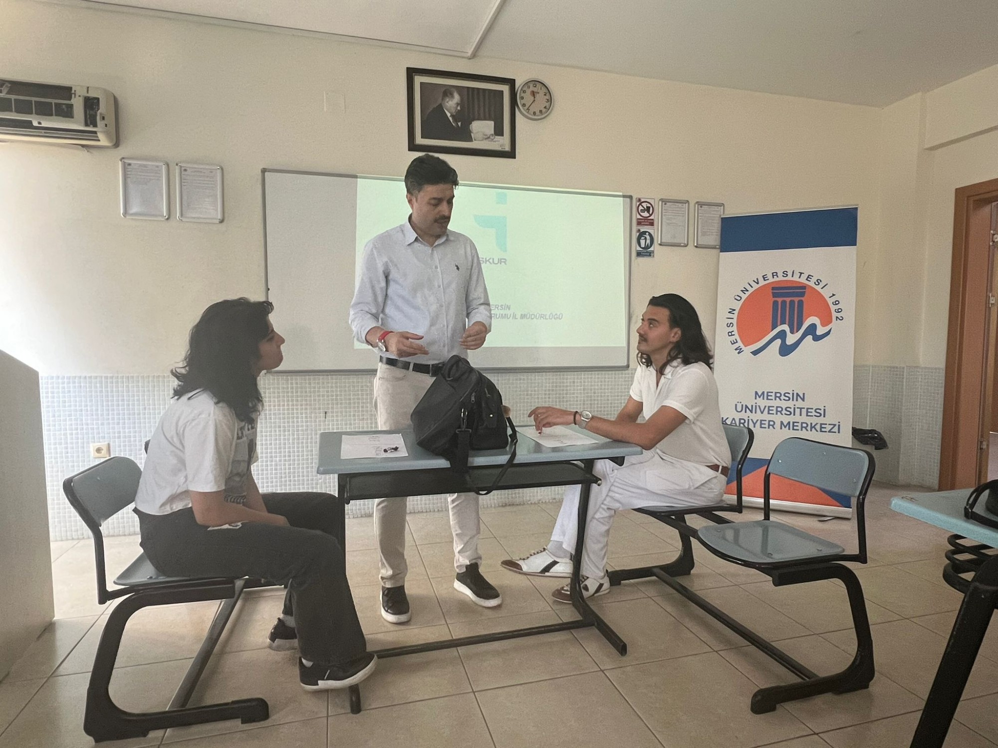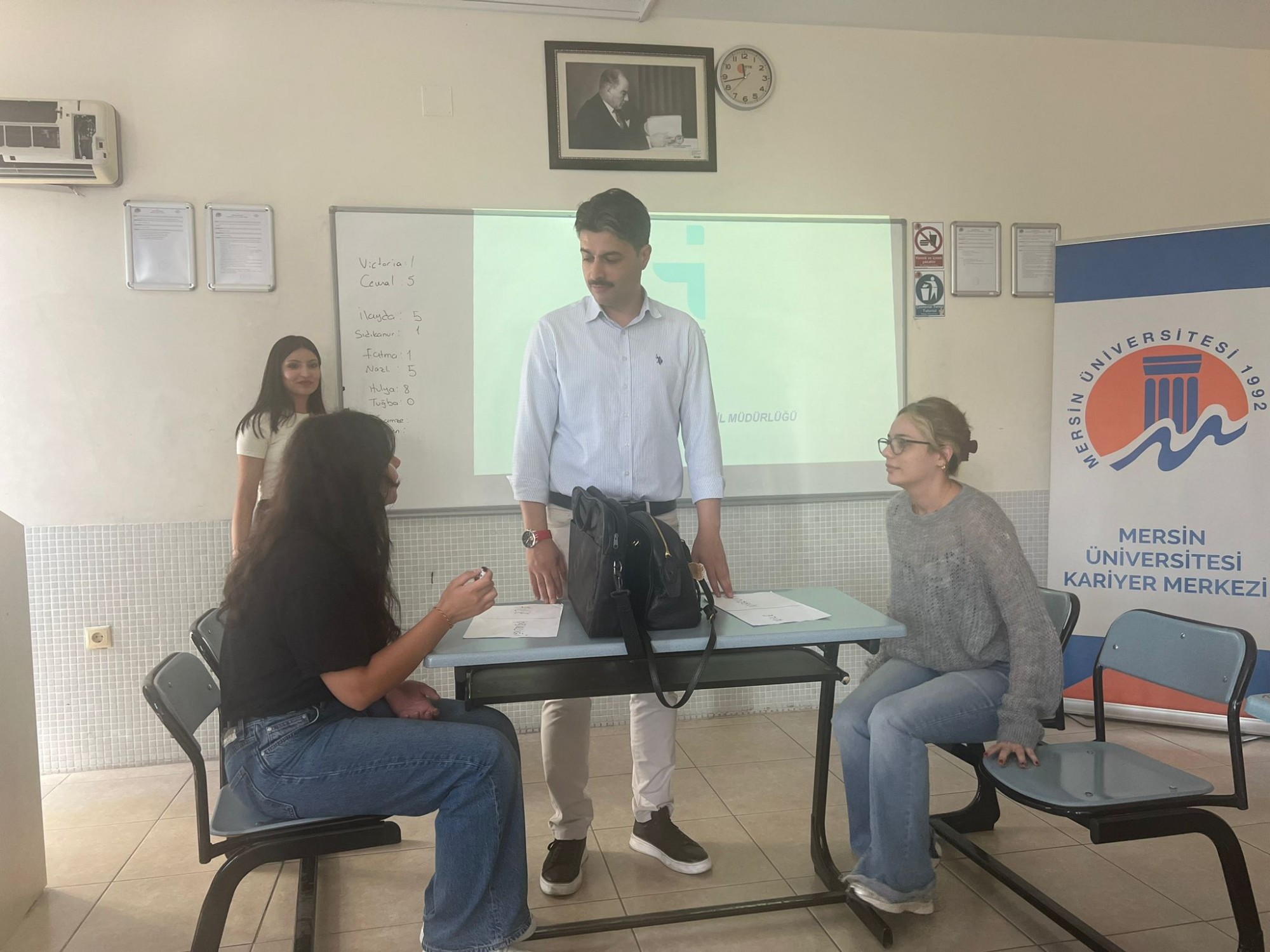 Eğitimi, İŞKUR Mersin İş Kulübü’nden İş ve Meslek Danışmanı Mehmet Öncü verdi. Programda öğrenciler, iş başvurusu süreçlerinde dikkat edilmesi gereken temel unsurlar, etkili özgeçmiş (CV) hazırlama yöntemleri, mülakatlarda beden dili ve iletişim stratejilerinin doğru kullanımı konularında bilgilendirildi. Katılımcılar, uygulamalı örneklerle kendi CV taslaklarını gözden geçirme ve mülakat simülasyonlarını deneyimleme fırsatı buldu.