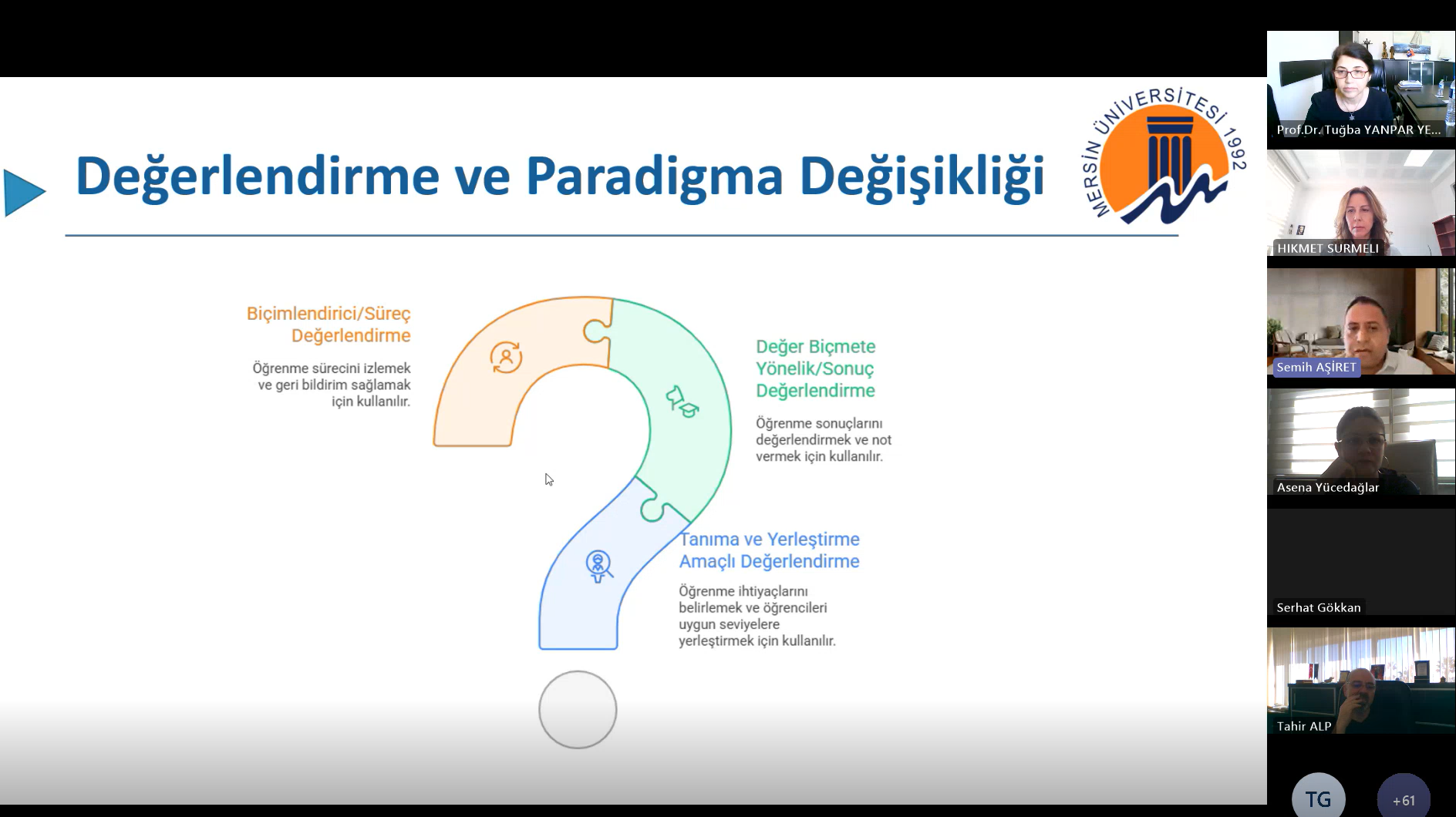 Mersin Üniversitesi Öğrenme ve Öğretmeyi Geliştirme Uygulama Araştırma Merkezi ve Eğitim Fakültesi işbirliğiyle düzenlenen “Eğiticilerin Eğitimi I” programının ikinci etkinliği, “Rubrik Geliştirme Süreçleri: Kuramsal Temeller ve Uygulama Örnekleri” başlığıyla 17 Ekim 2025 tarihinde çevrim içi olarak gerçekleştirildi.
