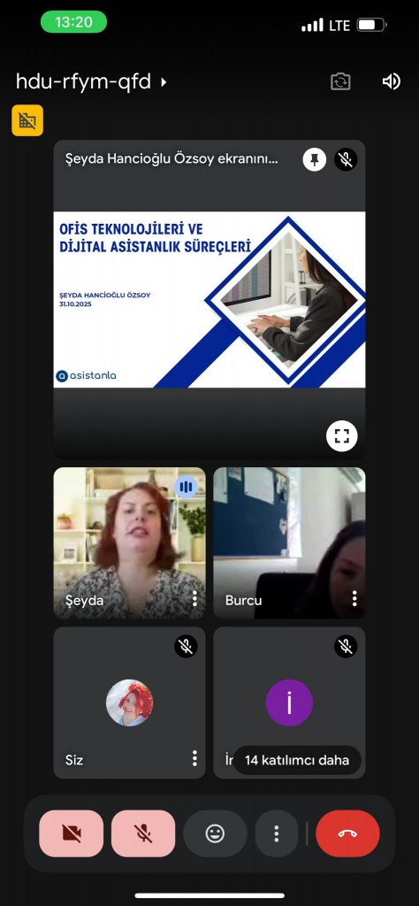31 Ekim 2025 Cuma günü saat 13.00’te çevrim içi olarak gerçekleştirilen etkinliğe, Yönast ve Asistanla Kurucusu ve EMCC Akredite Mentor Şeyda Hancıoğlu Özsoy konuşmacı olarak katıldı. Etkinliğe Büro Yönetimi ve Yönetici Asistanlığı ile Ofis Teknolojileri ve Veri Yönetimi Programı öğrencileri yoğun ilgi gösterdi.