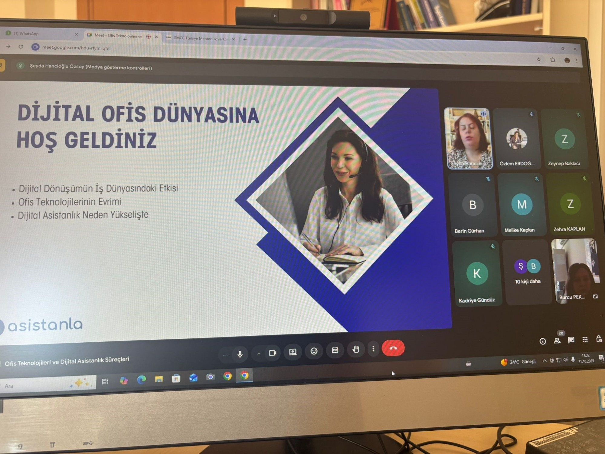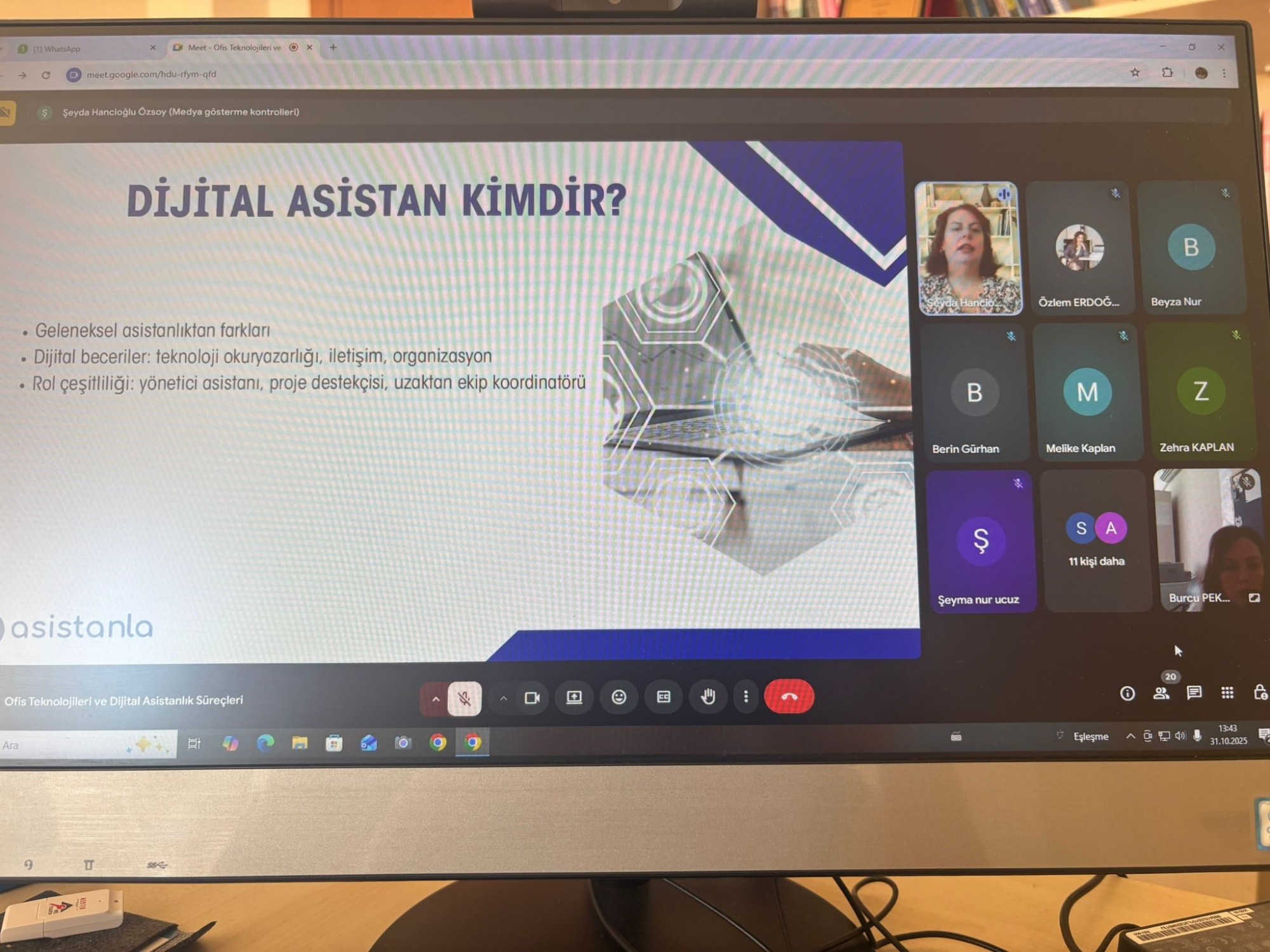 Büro Hizmetleri ve Sekreterlik BölümüBüro Yönetimi ve Yönetici Asistanlığı ile Ofis Teknolojileri ve Veri Yönetimi Programı öğrencilerine, YönAst Eğitim ve Danışmanlık & Asistanla Kurucusu Sayın Şeyda Hancıoğlu Özsoy tarafından 31 Ekim 2025 tarihinde “Ofis Teknolojileri ve Dijital Asistanlık Süreçleri” konulu bir eğitim verilmiştir. Eğitime bölüm başkanı Öğr. Gör. Dr. Burcu PEKDUYURUCU, öğretim elemanları, Öğr. Gör. Özlem ERDOĞAN OR, Öğr. Gör. Dr. Yazbahar ÇETİN DOĞAN, Öğr. Gör. Abdülmecit MISIR ve öğrencilerimiz katılım sağladı.