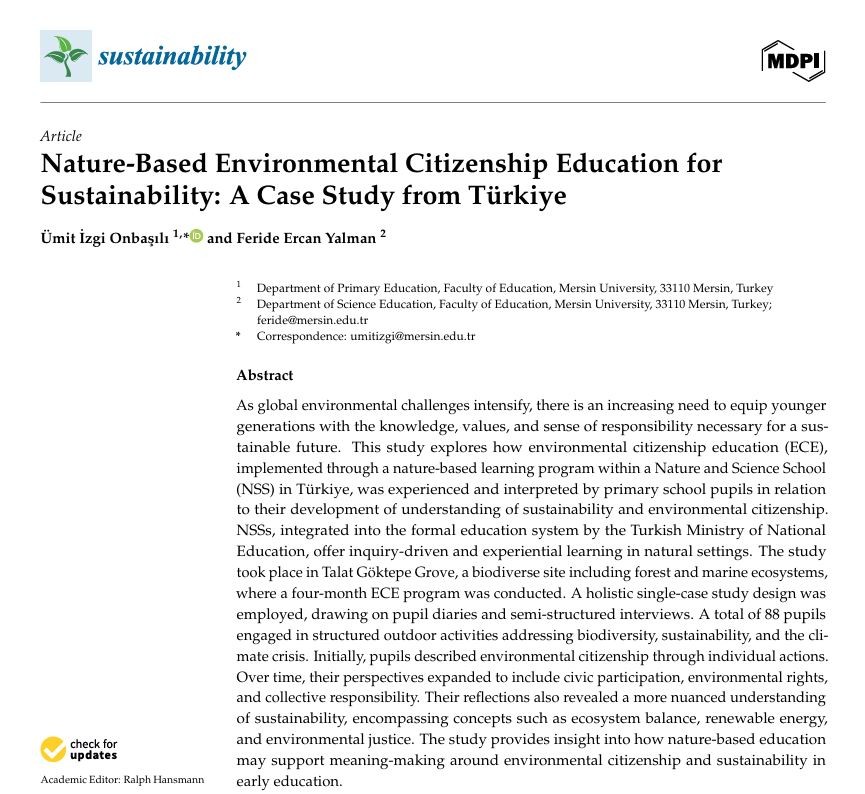 Izgi Onbasılı, Ü.; Ercan Yalman, F. Nature-Based Environmental Citizenship Education for Sustainability: A Case Studt from Türkiye. Sustainability 2025, 17, 5917. https://doi.org/10.3390/su17135917