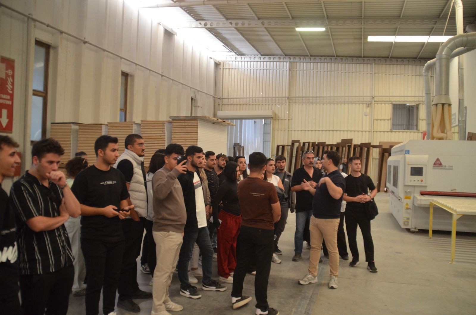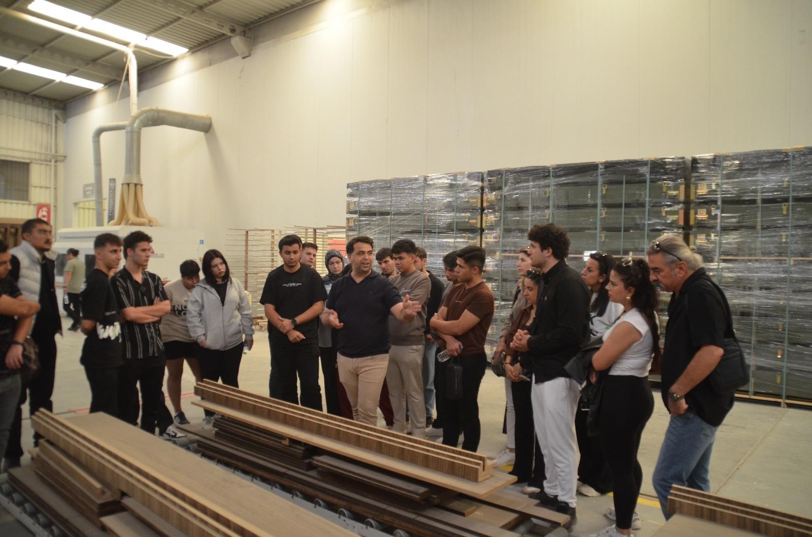 Öğrenciler, üretimden montaj aşamasına kadar mobilya tasarım ve uygulama süreçlerini yerinde gözlemleyerek mesleki bilgi ve deneyimlerini geliştirdiler.