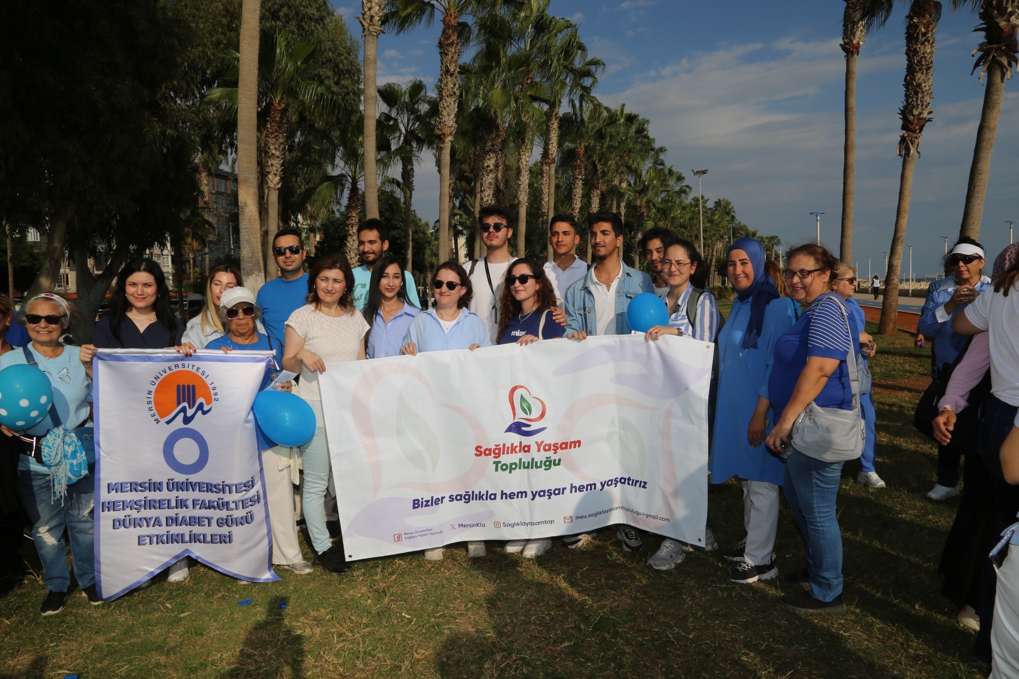 Diyabet Haftası kapsamında, Mersin Üniversitesi Hemşirelik Fakültesi İç Hastalıkları Hemşireliği Anabilim Dalı, Sağlık Bilimleri Fakültesi Beslenme ve Diyetetik Bölümü ile Sağlıkla Yaşam Topluluğu iş birliğiyle anlamlı bir “Mavi Adımlar Farkındalık Yürüyüşü” düzenlendi.