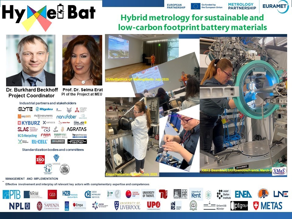 Üniversitemizin proje ortağı olduğu Avrupa Birliği HORIZON EUROPE /EURAMET programı Green Deal çağrısı kapsamında Physikalisch-Technische Bundesanstalt (PTB)’den Dr. Burkhard BECKHOFF koordinatörlüğünde başvurusu yapılan “Hybrid metrology for sustainable and low-carbon footprint battery materials, HyMetBat” isimli proje desteklenmeye hak kazandı.