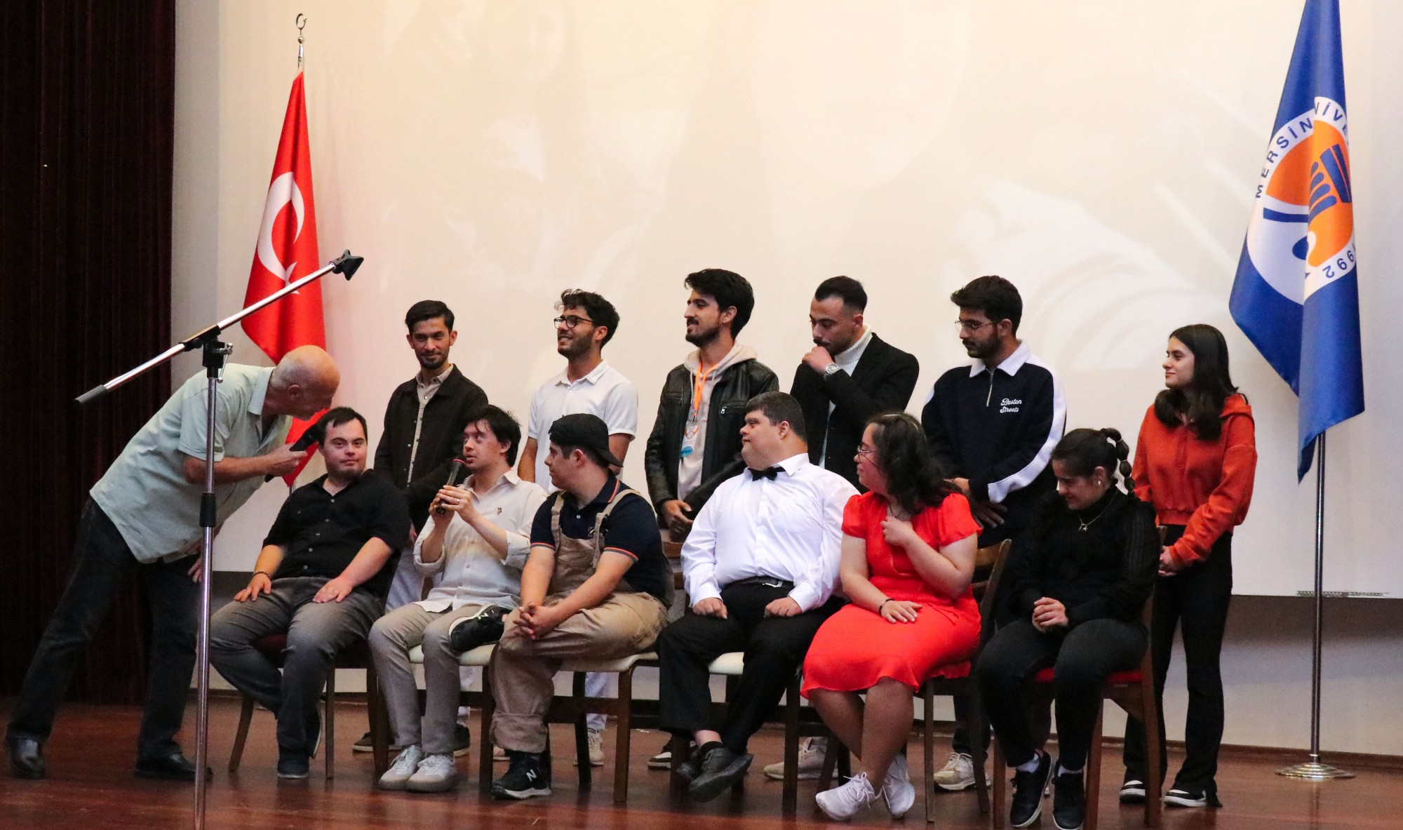 Mersin Üniversitesi, özel eğitim öğrencilerinin sosyal hayata aktif katılımını ve sanatsal üretimlerini destekleyen etkinliklere ev sahipliği yapmayı sürdürüyor. Bu kapsamda bugün Prof. Dr. Uğur Oral Kültür Merkezi’nde “Trizomik Buluşmalar Vol. 4” adlı gösteri sahnelendi. Gösteride, tamamı özel eğitim öğrencilerinden oluşan Trizomik Oyuncular Topluluğu performanslarıyla izleyicilerin beğenisini kazandı. Enerjileri ve sahne hakimiyetleriyle dikkat çeken ekip; Arda Deniz Özkan, Ayberk Aksay, Başak Adak, Damlanur Erbaş, Ezgi Yılmaz, İ. Hakkı Açıkyol, Mete Sapmaz ve Miraç Yıldırmaz isimlerinden oluştu. Gösterinin yönetmenliğini Erdal Özkan üstlendi. Etkinlik kapsamında ayrıca özel eğitim öğrencilerinin sosyal uyumunu güçlendirmeyi hedefleyen Can Dostum Mersin Projesi de tanıtıldı. Projede görev alan öğrenciler Bünyamin Güzel, Furkan Türel, Doğan Karaaslan, Batuhan Onay ve Seher Yıldız, yürüttükleri çalışmalarla projeye katkı sunuyor.