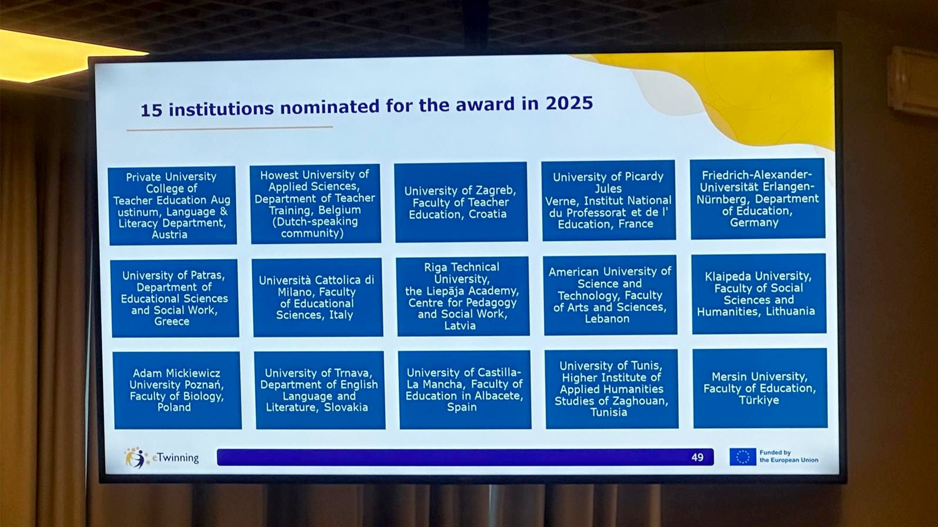 Üniversitemiz, 2025 yılında yürüttüğü başarılı eTwinning uygulamalarıyla bir kez daha kalite etiketi almaya hak kazanarak, Avrupa Birliği’ne üye ve üye olmayan ülkeler arasından seçilen 15 finalist üniversite arasında Türkiye’yi temsil etme başarısı gösterdi.