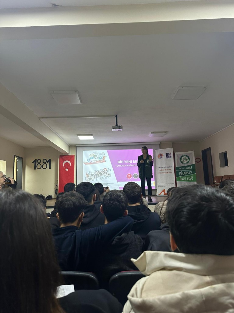 Mersin Yahya Günsur Mesleki ve Teknik Anadolu Lisesi, bugün teknoloji bağımlılığı konusunda farkındalık oluşturmayı amaçlayan önemli bir etkinliğe ev sahipliği yaptı. Mersin Üniversitesi Bağımlılıkla Mücadele Komisyonu üyesi, Sağlık Hizmetleri Meslek Yüksekokulu Öğretim Elemanı ve Genç Yeşilay Topluluğu Akademik Danışmanı Öğr. Gör. Dr. Betül SARI tarafından verilen “Bir Yeni Bildirim: Teknoloji Bağımlılığına Dur De” başlıklı konferans, yoğun öğrenci katılımıyla gerçekleştirildi.