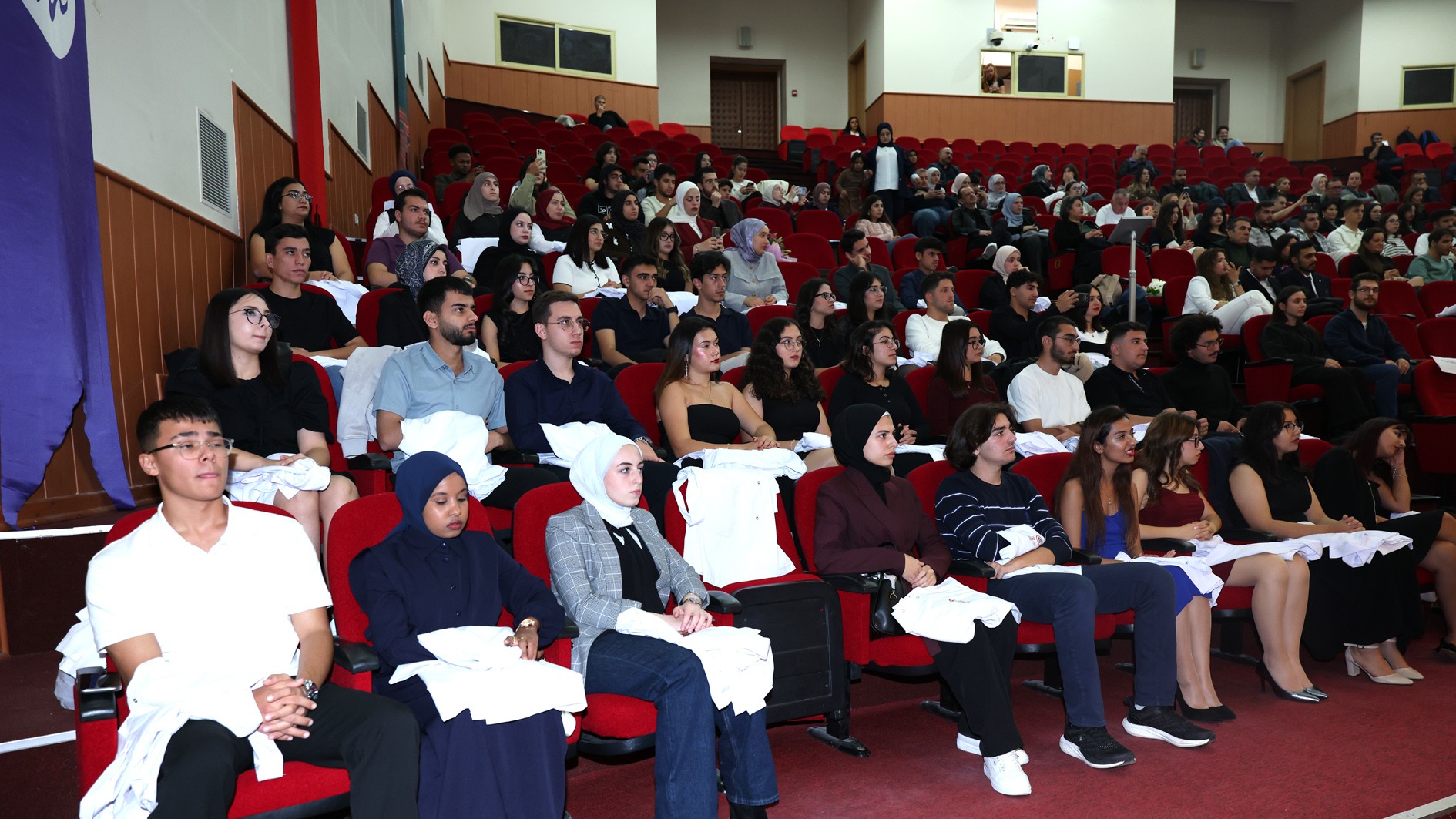 Üniversitemiz Eczacılık Fakültesi, 11 Aralık Perşembe günü, Üniversitemiz Prof. Dr. Uğur Oral Kültür Merkezi'nde 2025-2026 Eğitim-Öğretim Yılı birinci sınıf öğrencileri için beyaz önlük giyme töreni düzenledi.